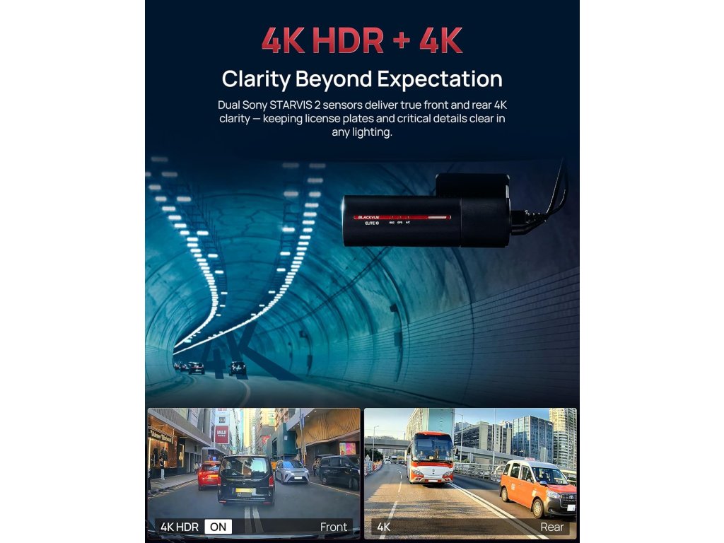 Absolutní špička v záznamu obrazu. BlackVue ELITE 10 je prémiová 2-kanálová 4K auto kamera nové generace, která posouvá hranice nočního vidění a cloudového dohledu.