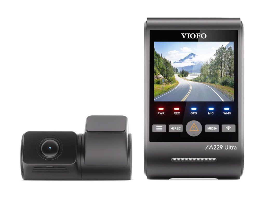VIOFO A229 Ultra 2CH – dvoukanálová 4K + 4K auto kamera se senzory Sony STARVIS 2, HDR, rychlým 5GHz Wi-Fi, přesným GPS a chytrým hlasovým ovládáním.