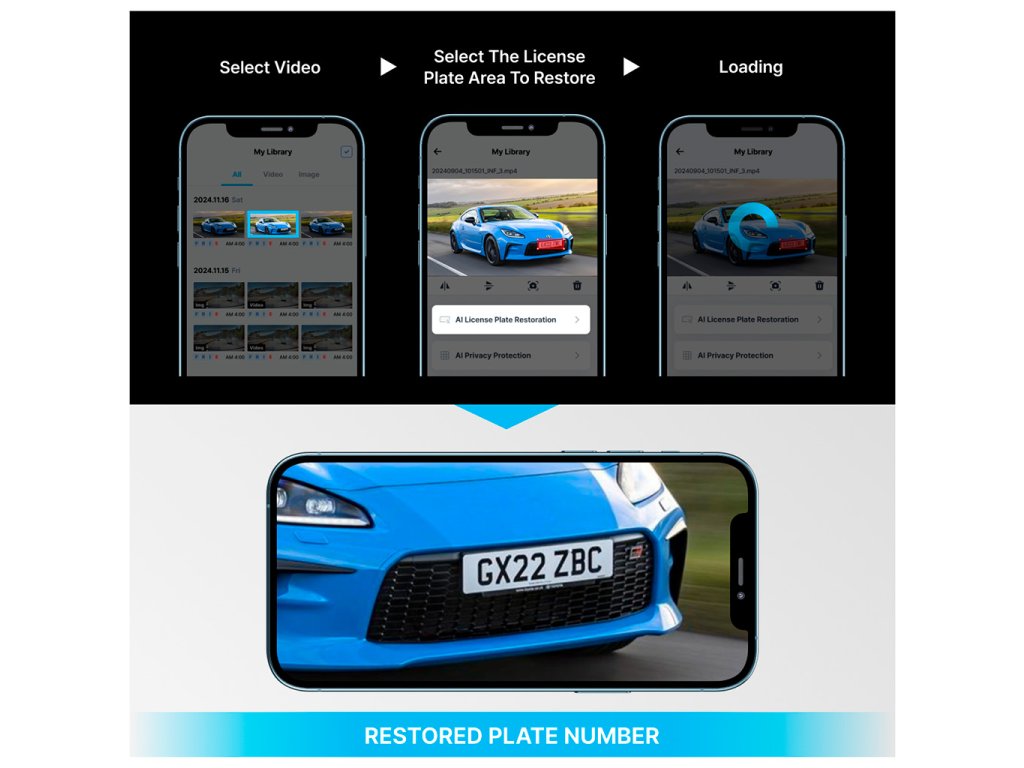 - Funkce AI License Plate Restoration – rozostřenou nebo málo čitelnou registrační značku umí automaticky „vykreslit“ ostřeji.