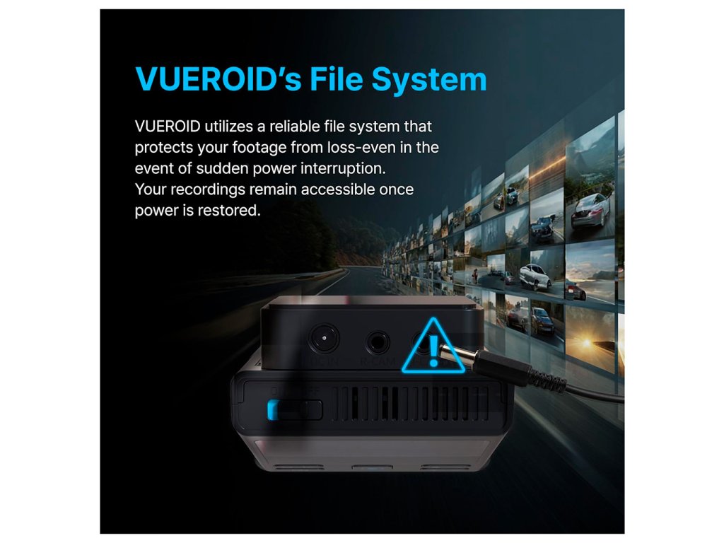 - Systém souborů VUEROID File System zajišťuje, že záběry nebudou ztraceny ani při výpadku napájení.